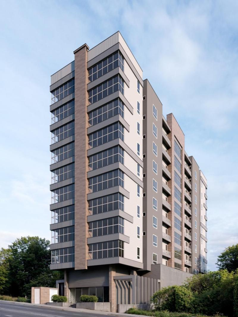 Edifício residencial/comercial com 03 andares de garagens, área comercial e apartamentos de 01, 02 e 03 dormitórios.